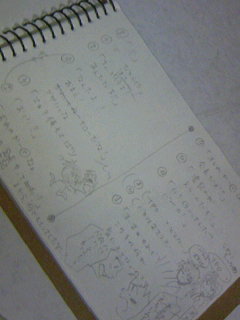 ちっさめなクロッキー帳に、上のように2分割して(?)セリフ書きまくってます。